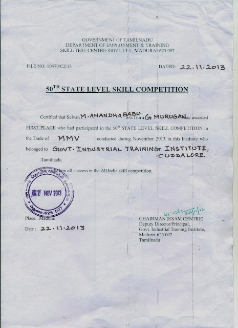 FIRST PLACE IN MMV GOVT I.T.I, CUDDALORE.